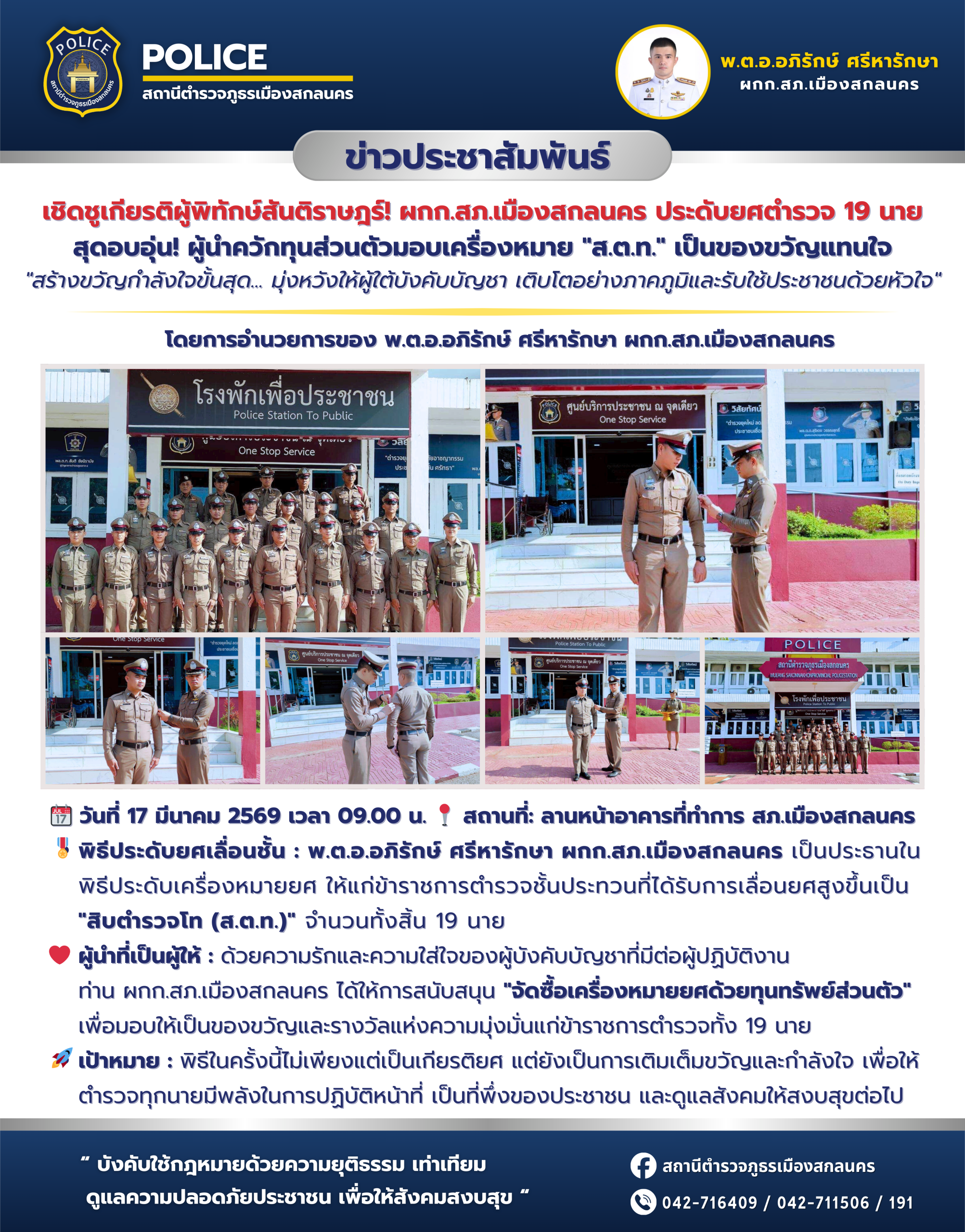 “บังคับใช้กฎหมายด้วยความยุติธรรม เท่าเทียม ดูแลความปลอดภัยประชาชน เพื่อให้สังคมสงบสุข“